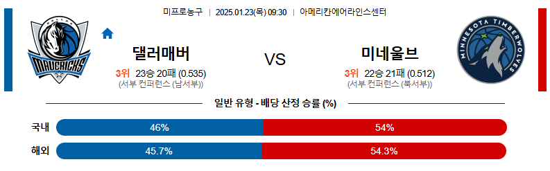 댈러스 대 미네소타 NBA 01월23일 맞대결 생중계, 스포츠중계, 스포츠분석