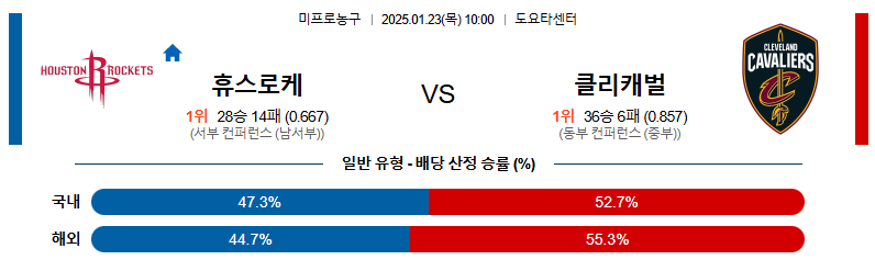 휴스턴 대 클리블랜드 NBA 01월23일 맞대결 생중계, 스포츠중계, 스포츠분석