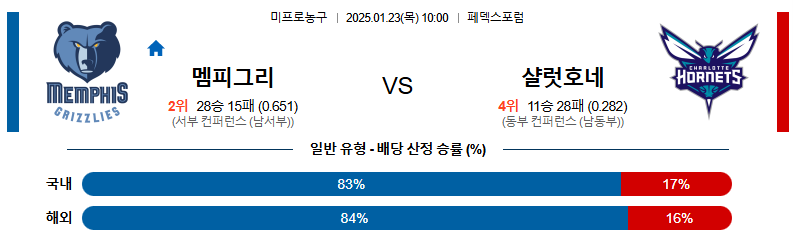 멤피스 대 샬럿 NBA 01월23일 맞대결 생중계, 스포츠중계, 스포츠분석