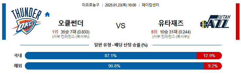 오클라호마 대 유타 NBA 01월23일 맞대결 생중계, 스포츠중계, 스포츠분석