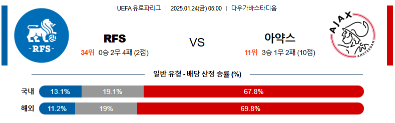 RFS 대 아약스 유로파리그 01월24일 맞대결 생중계, 스포츠중계, 스포츠분석