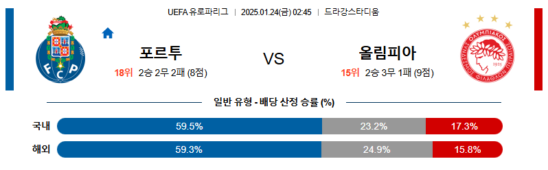 포르투 대 올림피아코스 유로파리그 01월23일 맞대결 생중계, 스포츠중계, 스포츠분석