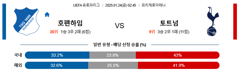 호펜하임 대 토트넘 유로파리그 01월24일 맞대결 생중계, 스포츠중계, 스포츠분석