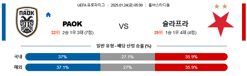 PAOK 대 슬라비아프라하 유로파리그 01월24일 맞대결 생중계, 스포츠중계, 스포츠분석