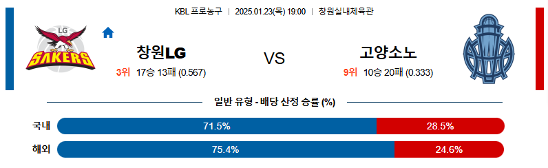 창원LG 대 고양소노 KBL 01월23일 맞대결 생중계, 스포츠중계, 스포츠분석