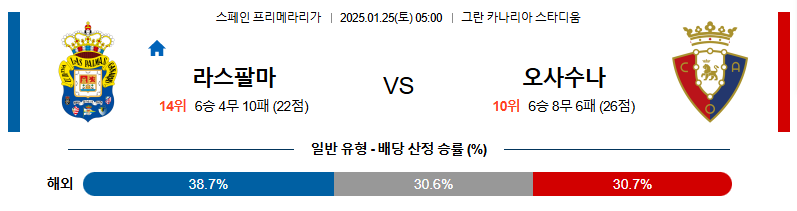 라스팔마스 대 오사수나 라리가 01월25일 맞대결 생중계, 스포츠중계, 스포츠분석