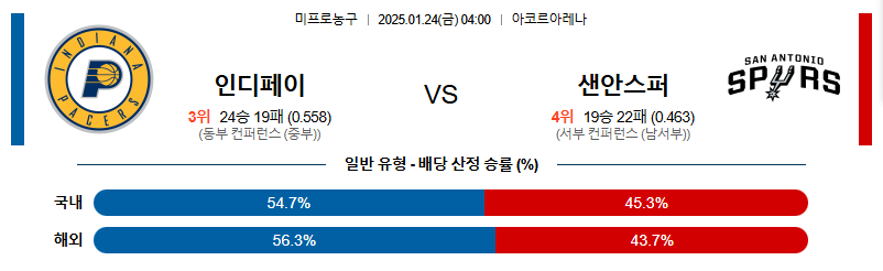 인디애나 대 샌안토니오 NBA 01월24일 맞대결 생중계, 스포츠중계, 스포츠분석