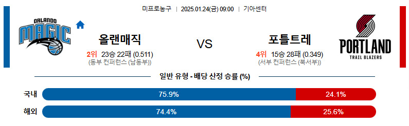 올랜도 대 포틀랜드 NBA 01월24일 맞대결 생중계, 스포츠중계, 스포츠분석