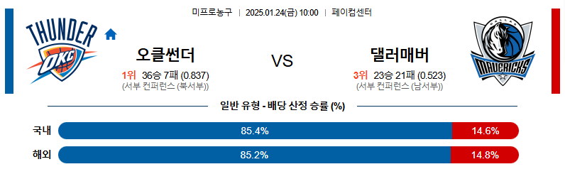 오클라호마 대 댈러스 NBA 01월24일 맞대결 생중계, 스포츠중계, 스포츠분석