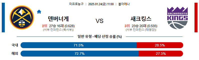 덴버 대 새크라멘토 NBA 01월24일 맞대결 생중계, 스포츠중계, 스포츠분석