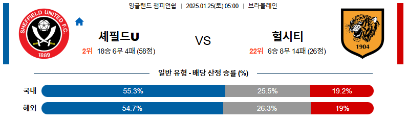 셰필드유나이티드 대 헐시티 잉글랜드챔피언쉽 01월25일 맞대결 생중계, 스포츠중계, 스포츠분석