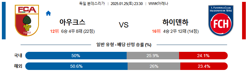 아우크스부르크 대 하이덴하임 분데스리가 01월25일 맞대결 생중계, 스포츠중계, 스포츠분석