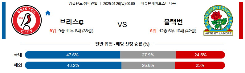 브리스톨시티 대 블랙번 잉글랜드챔피언쉽 01월26일 맞대결 생중계, 스포츠중계, 스포츠분석
