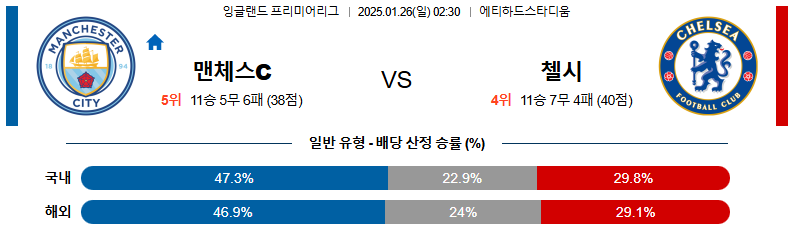 맨체스터시티 대 첼시 EPL 01월26일 맞대결 생중계, 스포츠중계, 스포츠분석