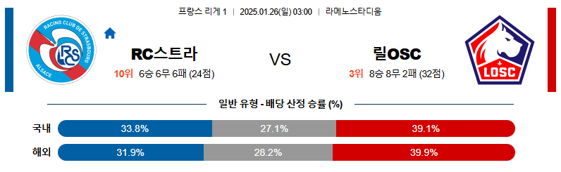 RC스트라스부르 대 릴OSC 리그앙 01월26일 맞대결 생중계, 스포츠중계, 스포츠분석