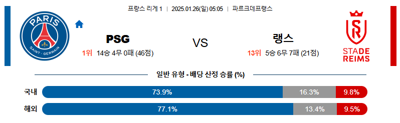 PSG 대 랭스 리그앙 01월26일 맞대결 생중계, 스포츠중계, 스포츠분석
