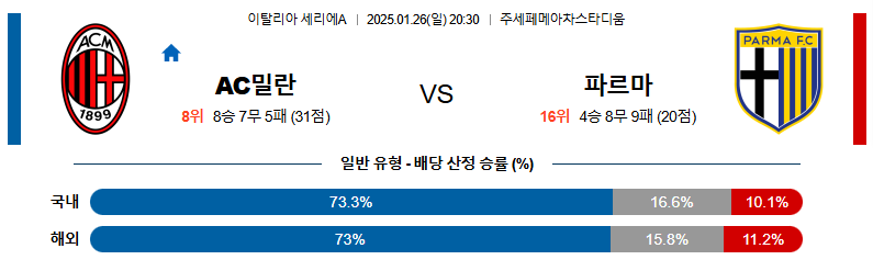 AC밀란 대 파르마 세리에A 01월26일 맞대결 생중계, 스포츠중계, 스포츠분석