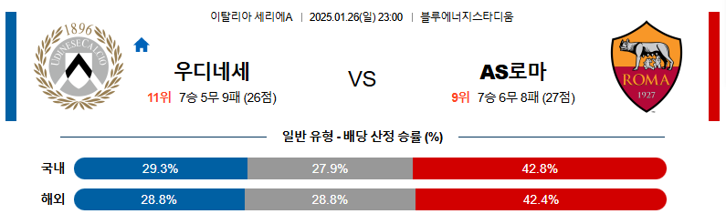 우디네세 대 로마 세리에A 01월26일 맞대결 생중계, 스포츠중계, 스포츠분석