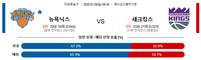 뉴욕닉스 대 새크라멘토 NBA 01일26일 맞대결 생중계, 스포츠중계, 스포츠분석