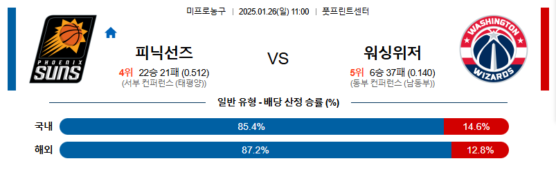 피닉스 대 워싱턴 NBA 01일26일 맞대결 생중계, 스포츠중계, 스포츠분석