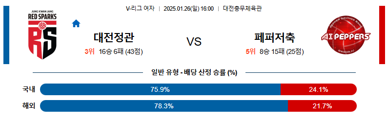 정관장 대 페퍼저축은행 V리그(여) 01일26일 맞대결 생중계, 스포츠중계, 스포츠분석