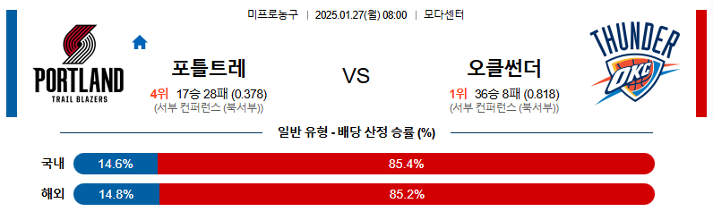포틀랜드 대 오클라호마 NBA 01일27일 맞대결 생중계, 스포츠중계, 스포츠분석