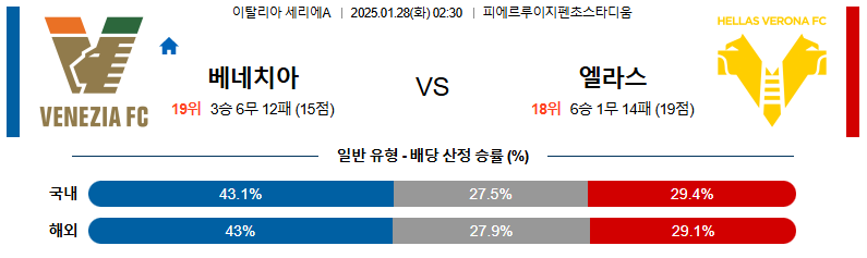 베네치아 대 엘라스베로나 세리에A 01일27일 맞대결 생중계, 스포츠중계, 스포츠분석