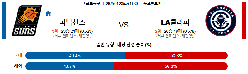 피닉스 대 LA클리퍼스 NBA 01일28일 맞대결 생중계, 스포츠중계, 스포츠분석