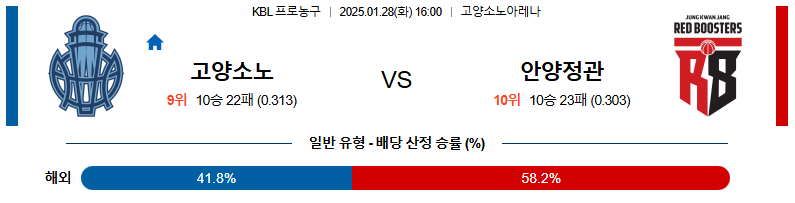 고양소노 대 안양정관장 KBL 01일28일 맞대결 생중계, 스포츠중계, 스포츠분석