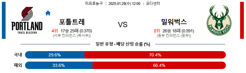 포틀랜드 대 밀워키 NBA 01일29일 맞대결 생중계, 스포츠중계, 스포츠분석