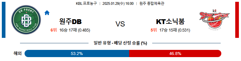 원주DB 대 수원KT KBL 01일29일 맞대결 생중계, 스포츠중계, 스포츠분석