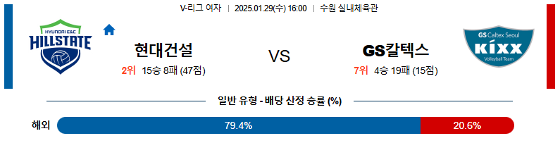 현대건설 대 GS칼텍스 V리그(여) 01일29일 맞대결 생중계, 스포츠중계, 스포츠분석