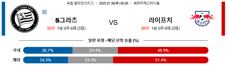 슈투름그라츠 대 라이프치히 UEFA챔피언스리그 01일30일 맞대결 생중계, 스포츠중계, 스포츠분석
