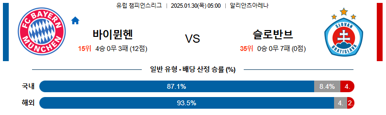 바이에른뮌헨 대 브라티슬라바 UEFA챔피언스리그 01일30일 맞대결 생중계, 스포츠중계, 스포츠분석