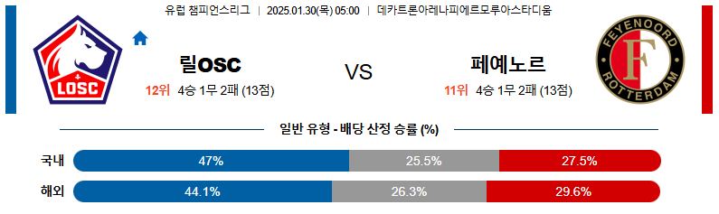 릴 대 페예노르트 UEFA챔피언스리그 01일30일 맞대결 생중계, 스포츠중계, 스포츠분석