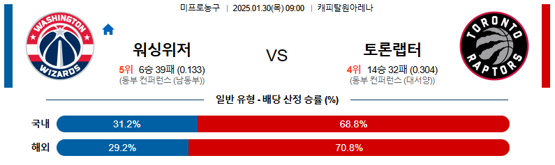 워싱턴 대 토론토 NBA 01일30일 맞대결 생중계, 스포츠중계, 스포츠분석