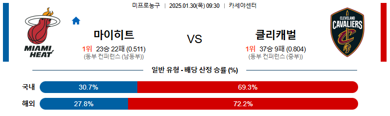마이애미 대 클리블랜드 NBA 01일30일 맞대결 생중계, 스포츠중계, 스포츠분석