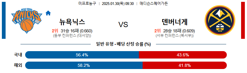 뉴욕닉스 대 덴버 NBA 01일30일 맞대결 생중계, 스포츠중계, 스포츠분석