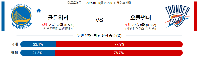 오클라호마 승리가 가능성이 높으며, 배당을 노리는 선택으로는 오버를 추천드립니다.