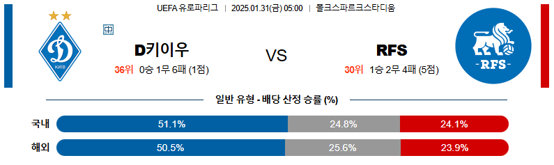 디나모키이우 대 RFS UEFA유로파리그 01일31일 맞대결 생중계, 스포츠중계, 스포츠분석