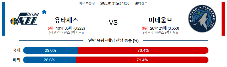 유타 대 미네소타 NBA 01일31일 맞대결 생중계, 스포츠중계, 스포츠분석