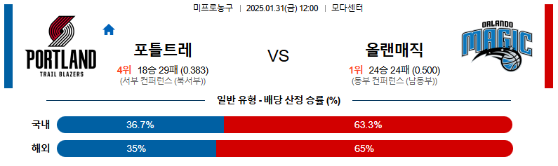 포틀랜드 대 올랜도 NBA 01일31일 맞대결 생중계, 스포츠중계, 스포츠분석