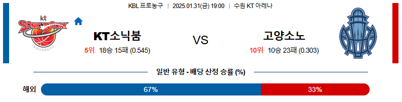 수원KT 대 고양소노 KBL 01일31일 맞대결 생중계, 스포츠중계, 스포츠분석