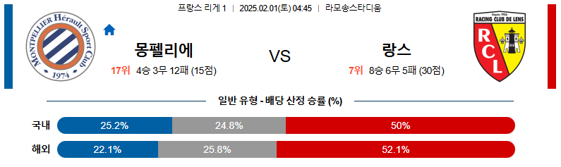 몽펠리에 대 랑스 리그앙 02일01일 맞대결 생중계, 스포츠중계, 스포츠분석