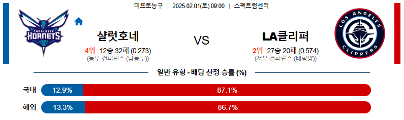 샬럿 대 LA클리퍼스 NBA 02일01일 맞대결 생중계, 스포츠중계, 스포츠분석
