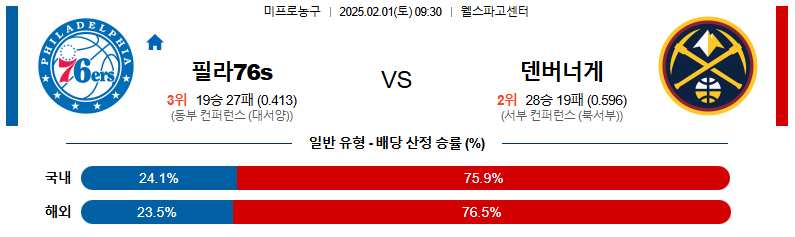 필라델피아 대 덴버 NBA 02일01일 맞대결 생중계, 스포츠중계, 스포츠분석