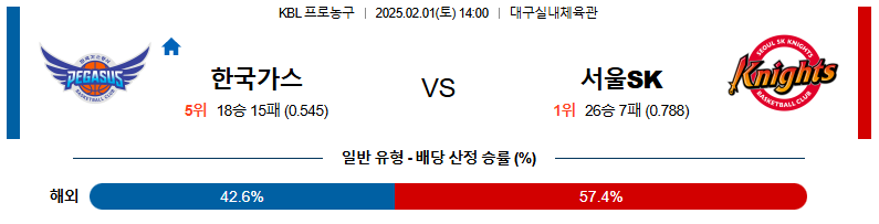 대구한국가스 대 서울SK KBL 02일01일 맞대결 생중계, 스포츠중계, 스포츠분석