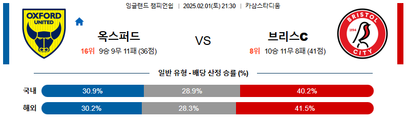 옥스포드 대 브리스톨 잉글랜드챔피언쉽 02일01일 맞대결 생중계, 스포츠중계, 스포츠분석