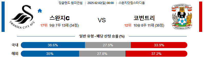 스완지 대 코번트리 잉글랜드챔피언쉽 02일02일 맞대결 생중계, 스포츠중계, 스포츠분석
