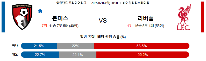 본머스 대 리버풀 EPL 02일02일 맞대결 생중계, 스포츠중계, 스포츠분석